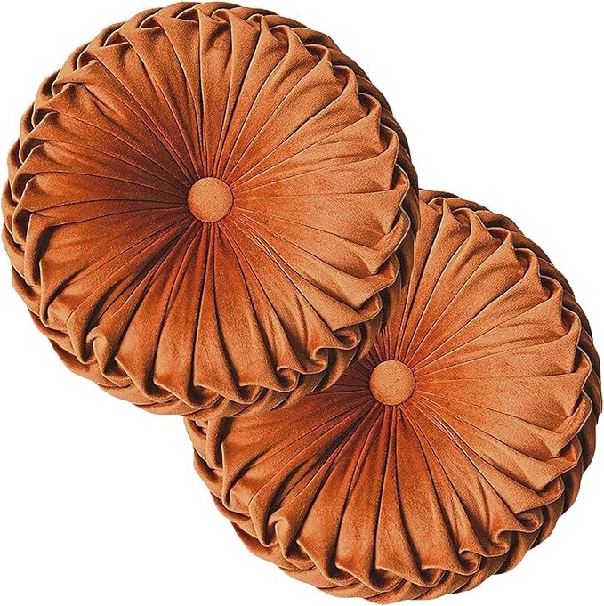 2 Pcs Round Throw Pillows Decorative Pumpkin Velvet Boho Pleated Bed Pillows Back Support for Couch Chair Dorm Car 14.96'' (Orange)