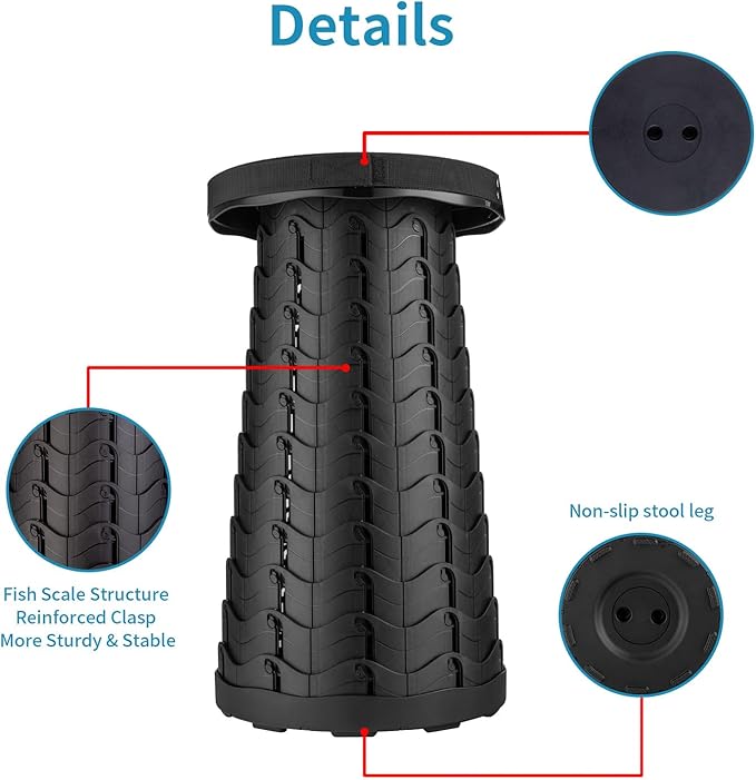 • STRETCH AND RETRACT SMOOTHLY AND EASILY: Benefiting from the fish scale design and our high precision production equipment, scales interlamellar spacing is kept 0.1mm. Make sure the stool’s stretch and retract smoothly and easily. You can open and close the stool in just seconds.