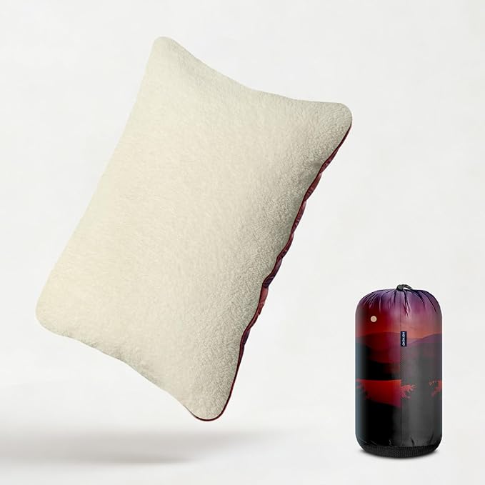 Camping Pillow, Sherpa Lining Travel Pillow Supportive Compressible Lightweight Camp Pillow with Storage Bag for Camping,Hiking,Backpacking,Airplane