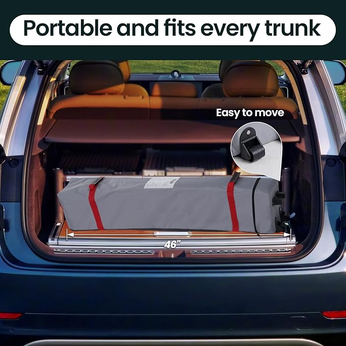 • Compact Packaging with Wheeled Bag: Designed for convenience, this canopy tent folds into a compact size(46"x7.8"x7.8"), fitting easily into most car trunks. The wheeled bag makes transportation a breeze, ideal for parties, BBQs, camping, markets, or beach shades