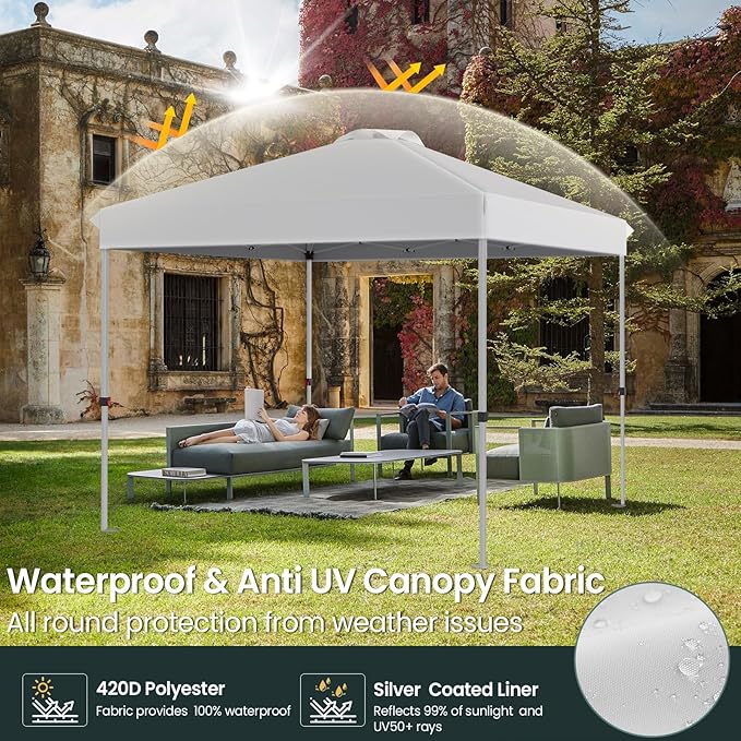 10x10 Pop Up Canopy, Heavy Duty Pop Up Tent with Wheeled Bag for Easy Moving, Easy Up Canopy Tent for Parties, Events, Camping, Outdoor Gazebo with 420D PU Coated Waterproof White Fabric