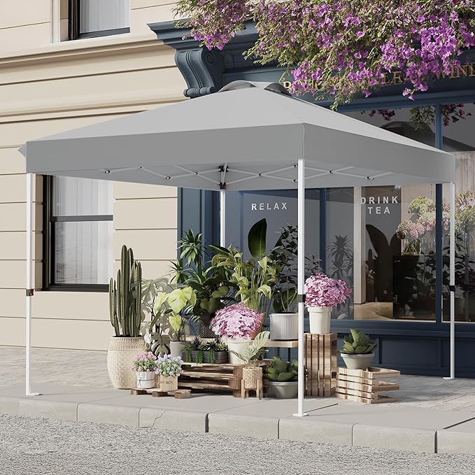 10x10 Pop Up Canopy, Heavy Duty Pop Up Tent with Wheeled Bag for Easy Moving, Easy Up Canopy Tent for Parties, Events, Camping, Outdoor Gazebo with 420D PU Coated Waterproof Grey Fabric