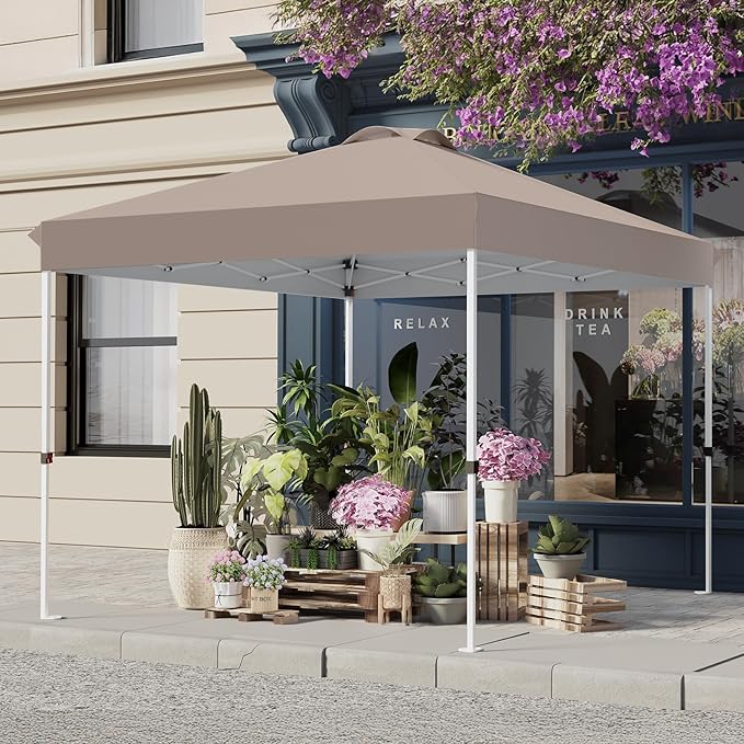 10x10 Pop Up Canopy, Heavy Duty Pop Up Tent with Wheeled Bag for Easy Moving, Easy Up Canopy Tent for Parties, Events, Camping, Outdoor Gazebo with 420D PU Coated Waterproof Brown Fabric