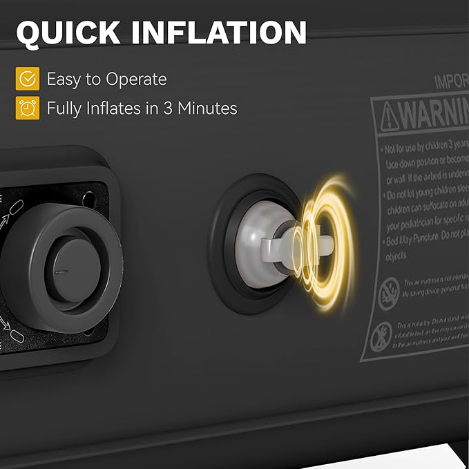 • Instant Bed in Minutes: No more scrambling when guests arrive; This air mattress with frame inflates in just 3 minutes, thanks to the built-in pump and self-expanding design; Set up a luxurious 79"L x 59"W x 28"H sleeping space in no time