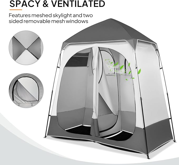 • ✔PRIVACY INVISIBLE: With full height silver coating, inside privacy is well protected. Perfect as a dressing room, camp restroom, shower tent, toilet tent and camping privacy tent etc