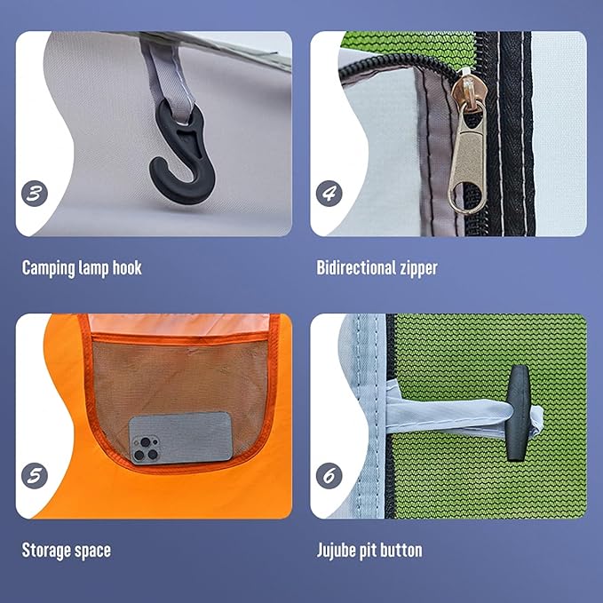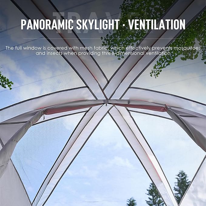 • VENTILATION FEATURES: The tent's thoughtful design includes multiple windows, multiple mesh windows and doors for ventilation and natural light and provide excellent airflow while keeping insects out.