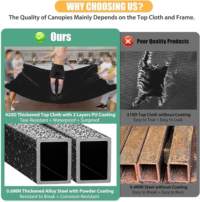 • 【420D PU Oxford Cloth】Heavy duty canopy tent 10x30 is made of 420D Oxford cloth with two layers of PU coating, UPF 50+, which blocks 99% of UV rays. Waterproof canopy gazebo tent with waterproof strip adopts heat-sealed seam technology, 100% waterproof, 1500mm waterproof pressure. Wedding tent professionally protects you from sun, wind and rain. Tents for parties is perfect for playground, yard, beaches, farm, gym, barbecu, trade shows, sporting event, disaster relief or other outdoor events.