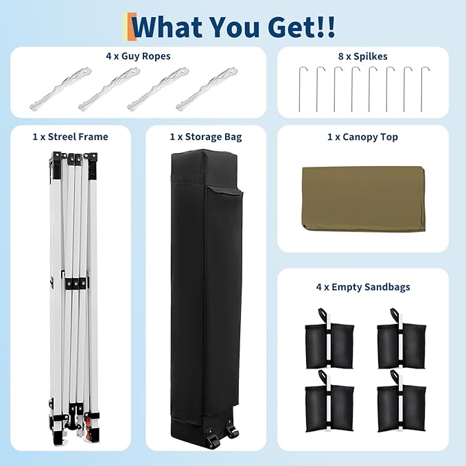 • PERFECT FOR ANY OUTDOOR SETTING:Great for picnics, camping, BBQs, markets, beaches, and more. A versatile shelter solution for both recreational and commercial use.