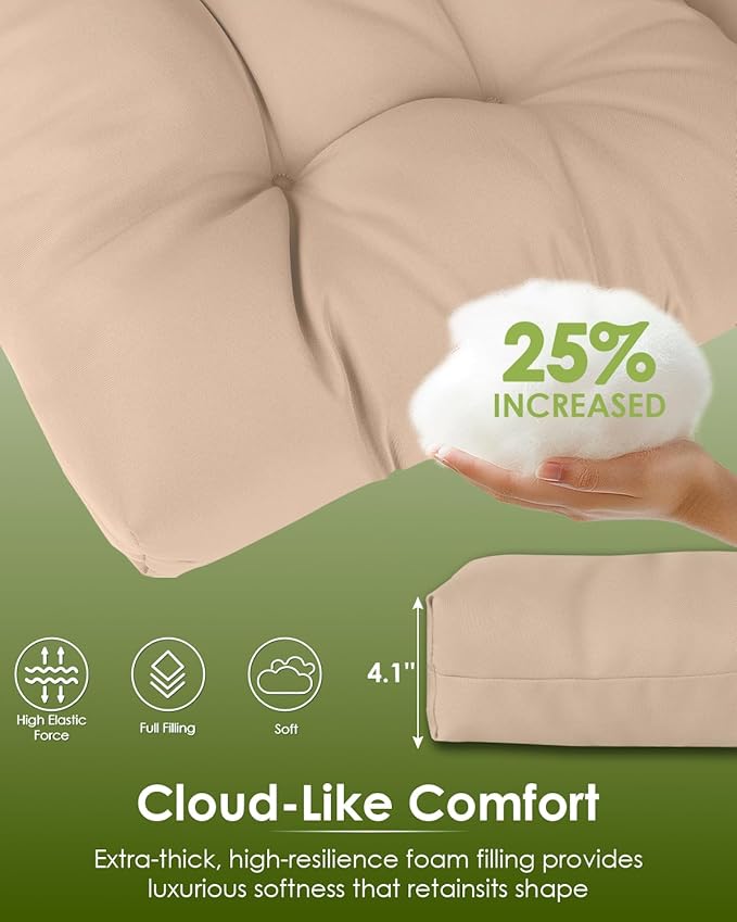 GREENVINES Rocking Chair Cushions Set of 4 | Polyester | Waterproof | Outdoor High Back Rocker Chairs Cushion | Seat with Ties | Non-Slip | Thickened Pad for Patio | 46.5" x 18.5" x 4.3" | Beige