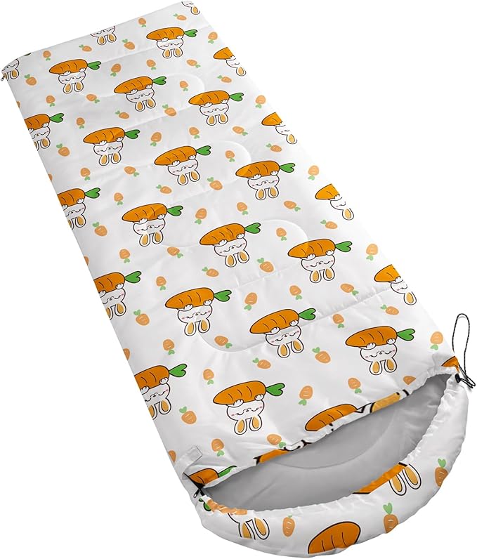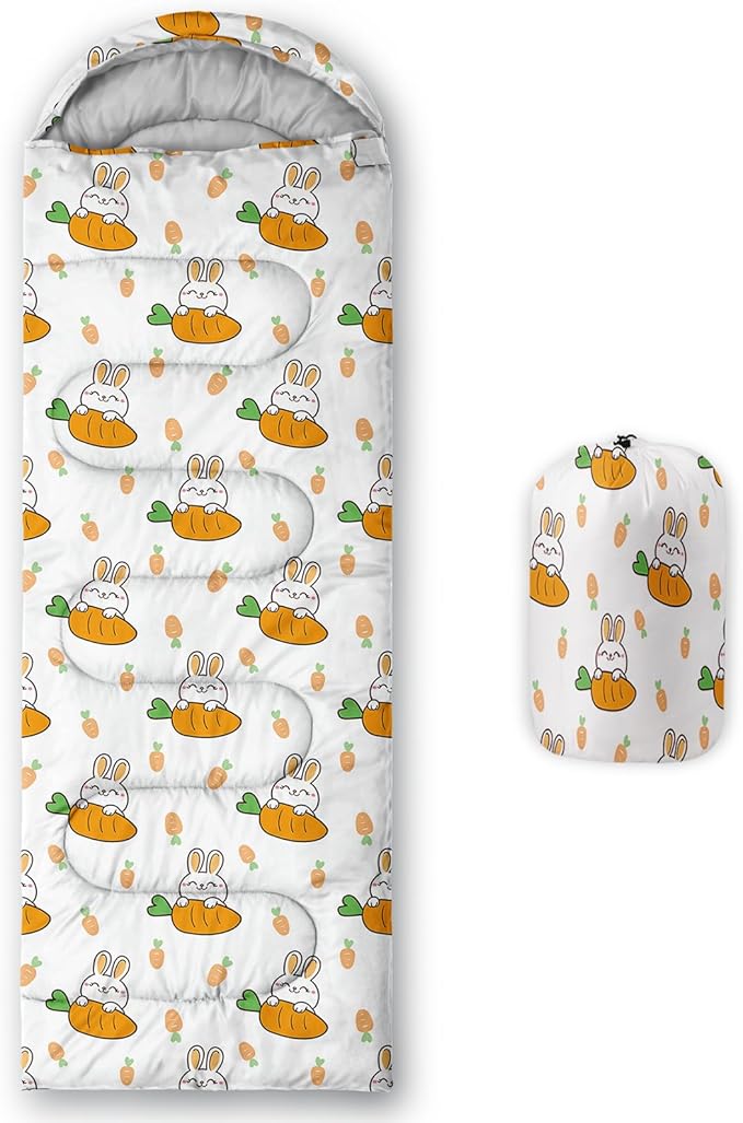 • Unique Rabbit Design:This Rabbit pattern sleeping bag is made of 3D digital printing with vibrant colors and patterns,size: 31W x 90L inches,temperature range: 32℉-77℉ (0℃-25℃),it also also have a weather resistant waterproof design to keep you warm and prevent you from any dampness,can be used in 3 seasons