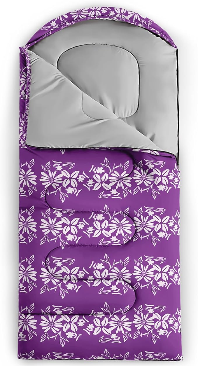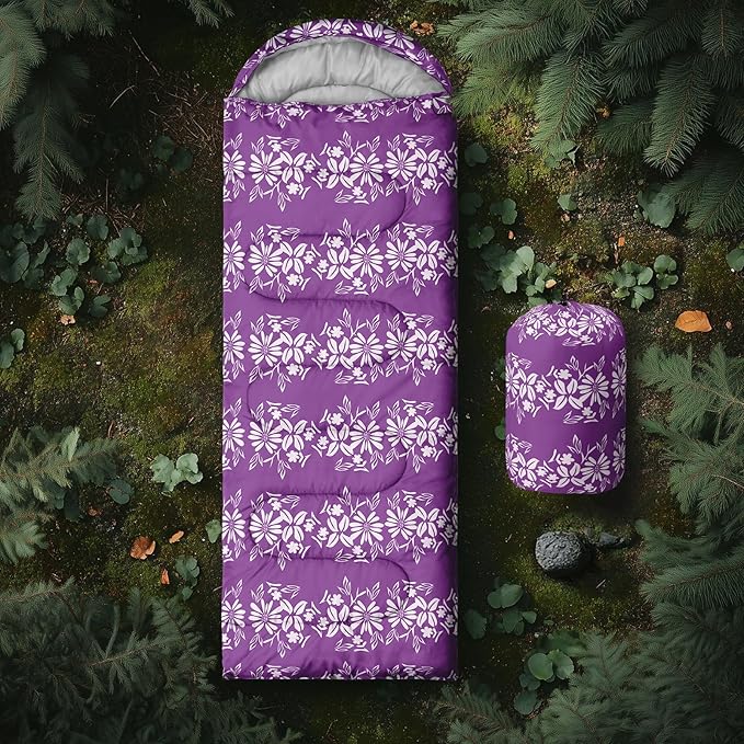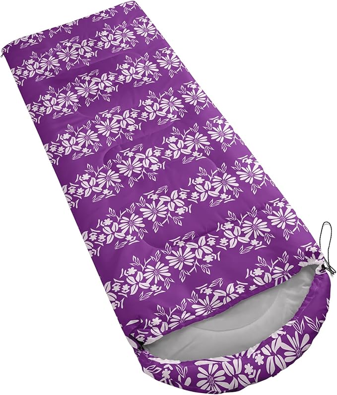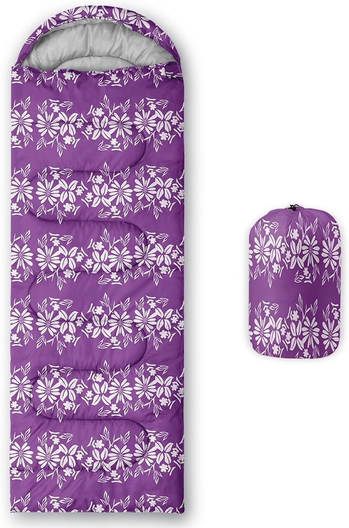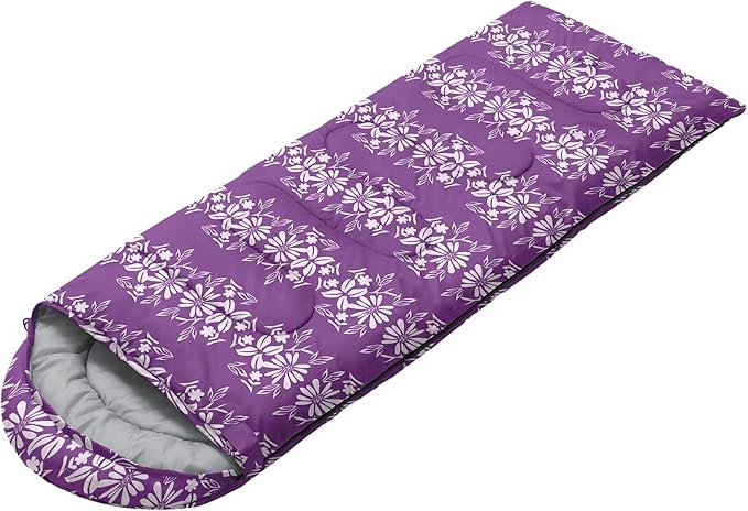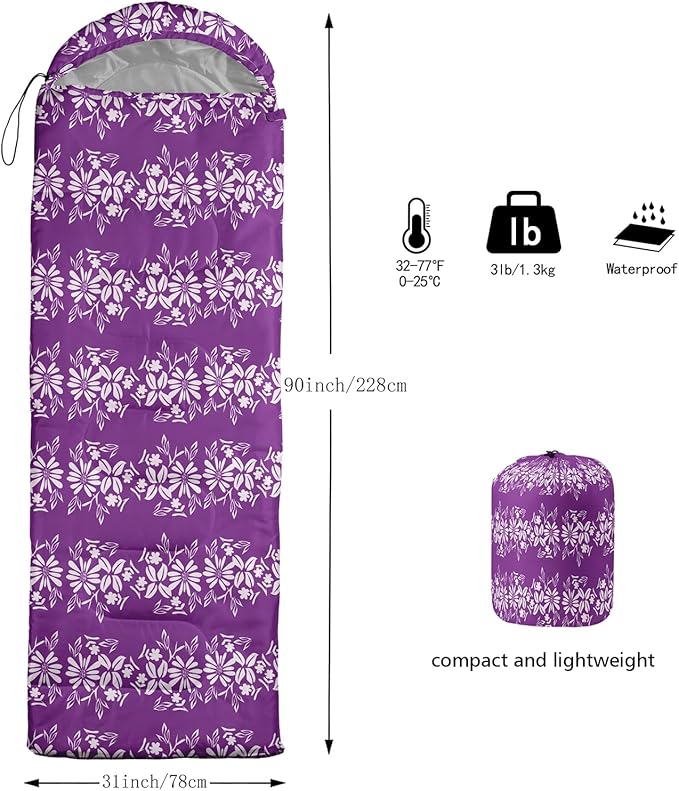 • Unique Floral Design:This Floral pattern sleeping bag is made of 3D digital printing with vibrant colors and patterns,size: 31W x 90L inches,temperature range: 32℉-77℉ (0℃-25℃),it also also have a weather resistant waterproof design to keep you warm and prevent you from any dampness,can be used in 3 seasons