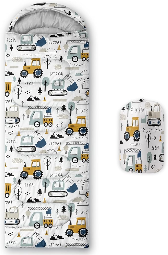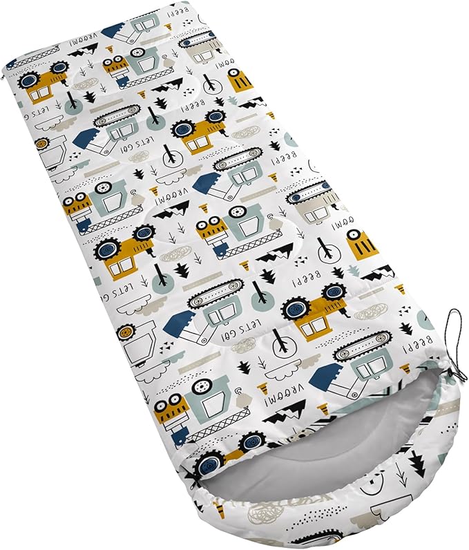 • Unique Excavator Design:This Excavator pattern sleeping bag is made of 3D digital printing with vibrant colors and patterns,size: 31W x 90L inches,temperature range: 32℉-77℉ (0℃-25℃),it also also have a weather resistant waterproof design to keep you warm and prevent you from any dampness,can be used in 3 seasons