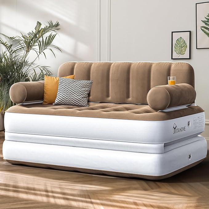 YITAHOME Queen Size Air Sofa Bed Mattress with Headboard and Pump, Blow Up Couch Inflatable Bed for Home Living Room, 79" x 60" x 25" (Expanded Size, Brown)