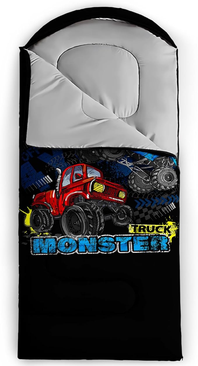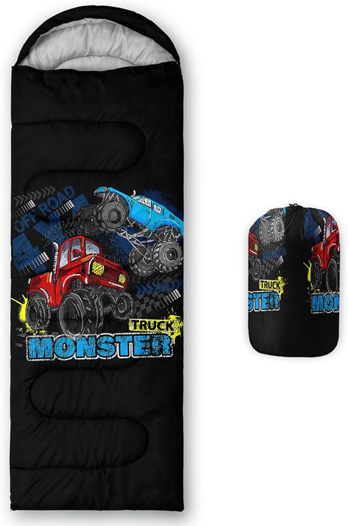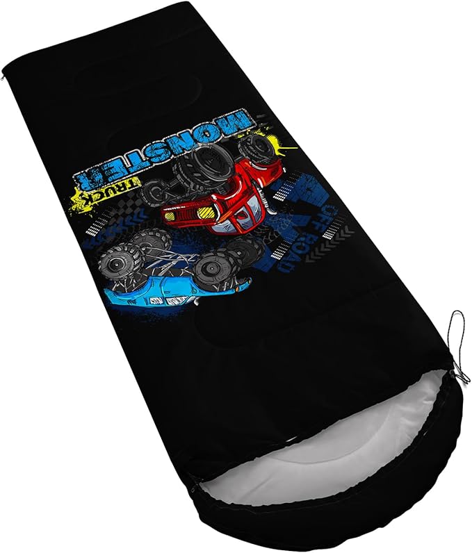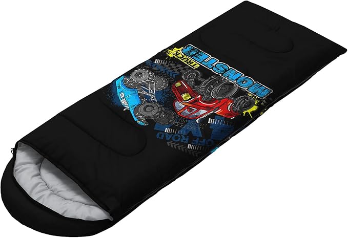 • Unique Truck Design:This Truck pattern sleeping bag is made of 3D digital printing with vibrant colors and patterns,size: 31W x 90L inches,temperature range: 32℉-77℉ (0℃-25℃),it also also have a weather resistant waterproof design to keep you warm and prevent you from any dampness,can be used in 3 seasons