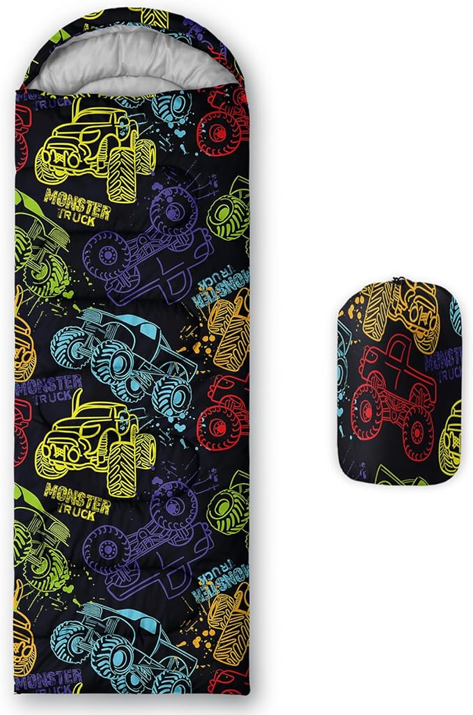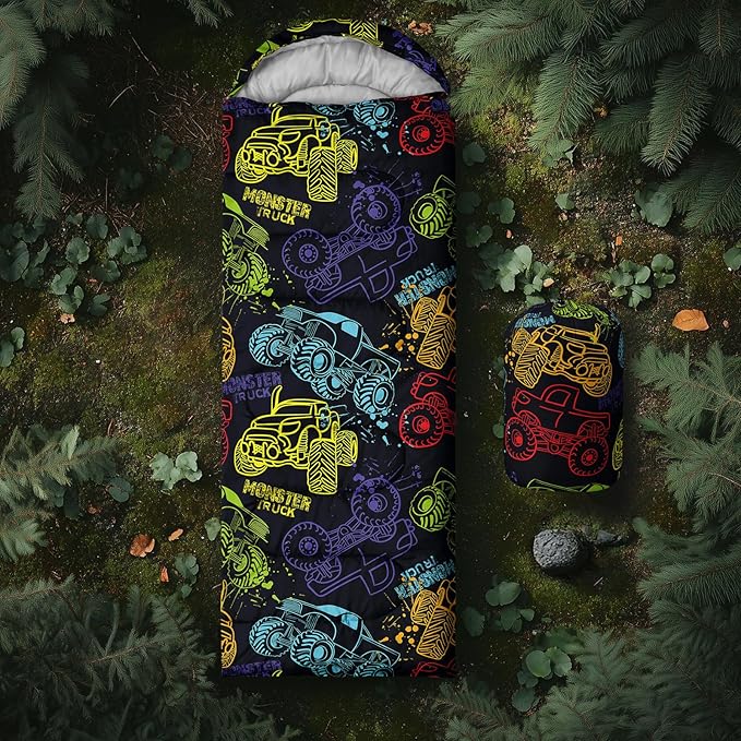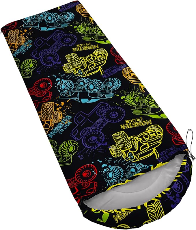 • Unique Truck Design:This Truck pattern sleeping bag is made of 3D digital printing with vibrant colors and patterns,size: 31W x 90L inches,temperature range: 32℉-77℉ (0℃-25℃),it also also have a weather resistant waterproof design to keep you warm and prevent you from any dampness,can be used in 3 seasons