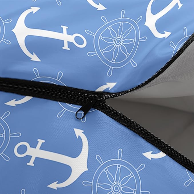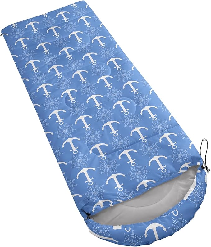 AILONEN Boys Sleeping Bag for Camping,Nautical Anchor,Lightweight & Waterproof,3 Season Warm & Cool Weather,Navy Blue Sleeping Bags for Kids Men Travelling,Outdoors